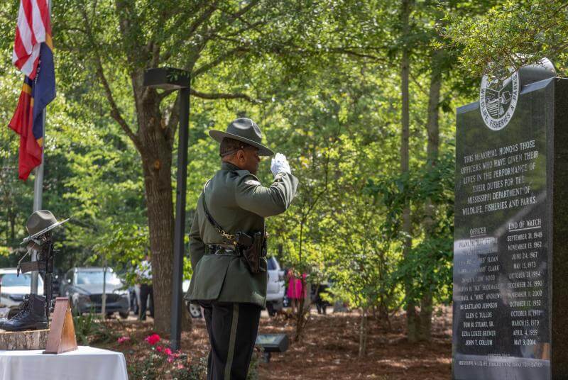 Color Guard Dinner Since 1948, 12 Mississippi Department of Wildlife, Fisheries, and Parks (MDWFP) Conservation Officers have lost their lives in the line of duty, and the annual Fallen Officers Memorial has honored their ultimate sacrifice. Dedicated in the spring of 2008, the monument was funded through the Mississippi Foundation for Wildlife, Fisheries, and Parks.